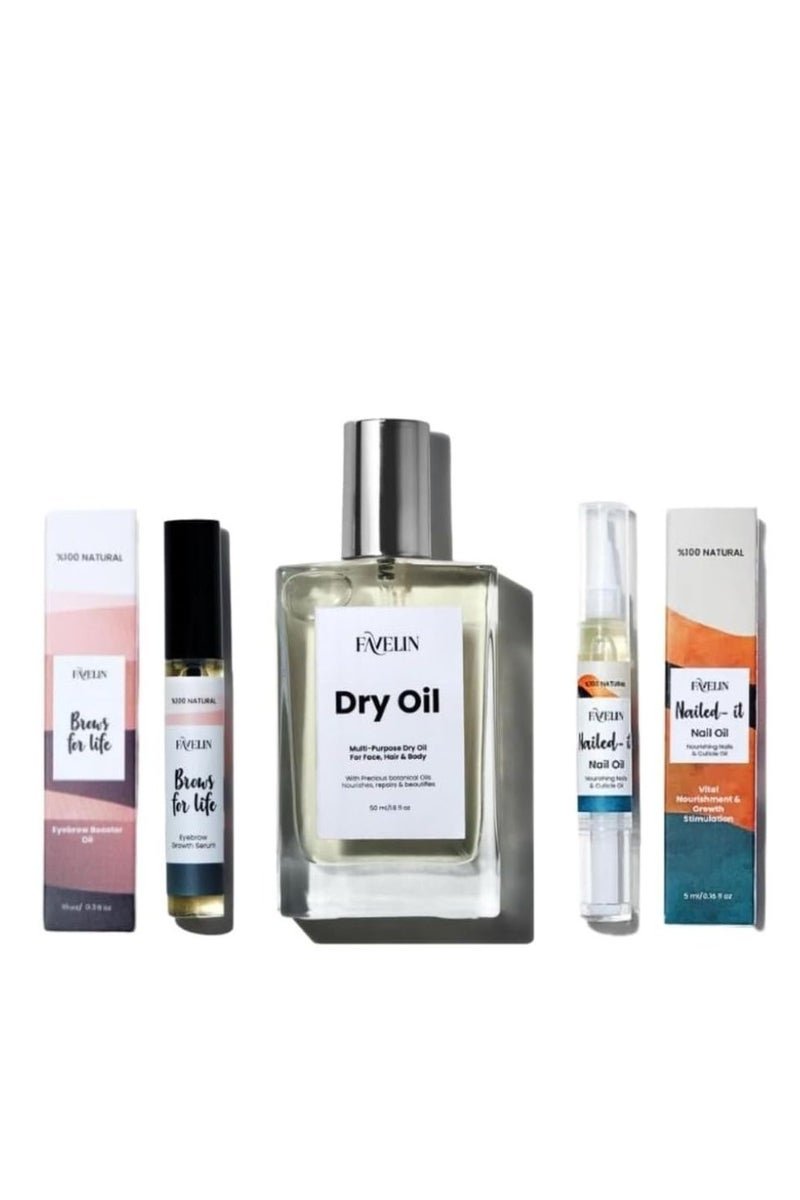favelin Oils Bundle | Dry Oil 50ml& Nail Oil 4ml & Brows Oil 10ml