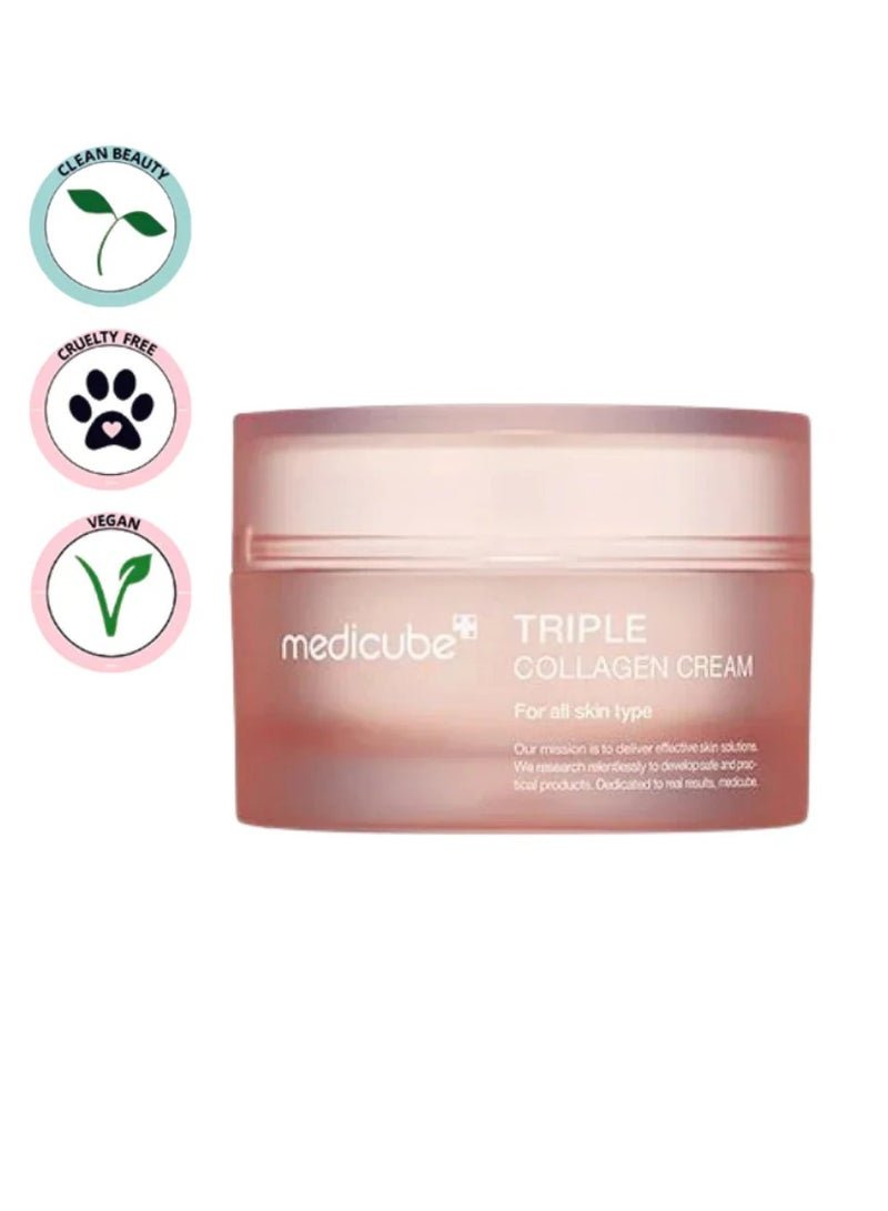 Medicube Triple Collagen Cream – Hydrating & Firming Moisturizer with Hyaluronic Acid, Premium Elastin, Shea Butter – Wrinkle Care & Boosts Elasticity – Korean Skincare, 1.69 oz