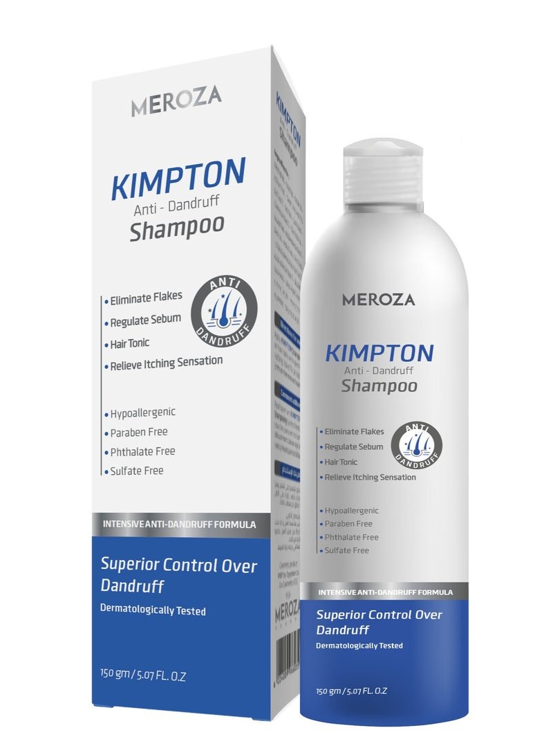 MEROZA KIMPTON Intensive Anti Dandruff Shampoo 150ml, 20 Active Ingredients, Removes Flakes, Relieves Itching, Regulates Sebum, Moisturizes Hair, Promotes Growth
